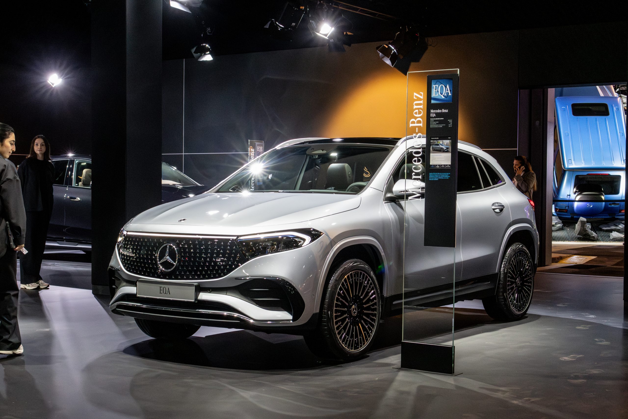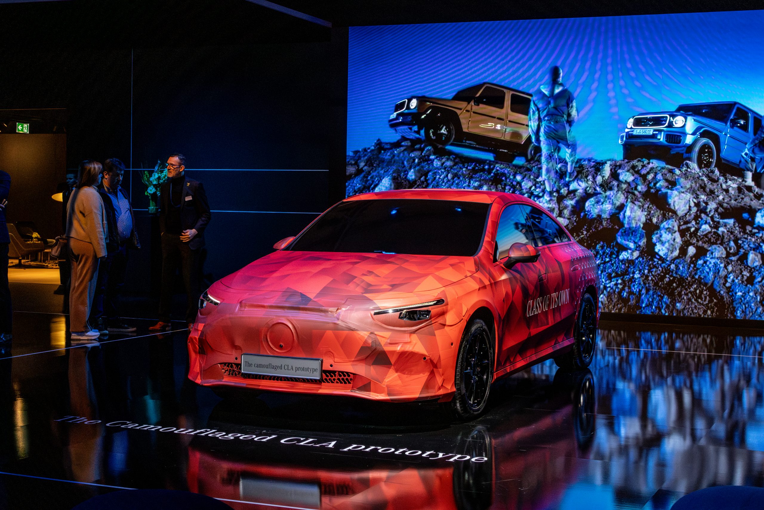 Mercedes toont op de beurs een mix van BEV, PHEV en ICE modellen. Het prototype CLA biedt een potentiële actieradius van meer dan 750 km (WLTP) dankzij een efficiënte 800V elektrische aandrijflijn en een laadsnelheid waarmee 300 km in 10 minuten kan worden bijgeladen.