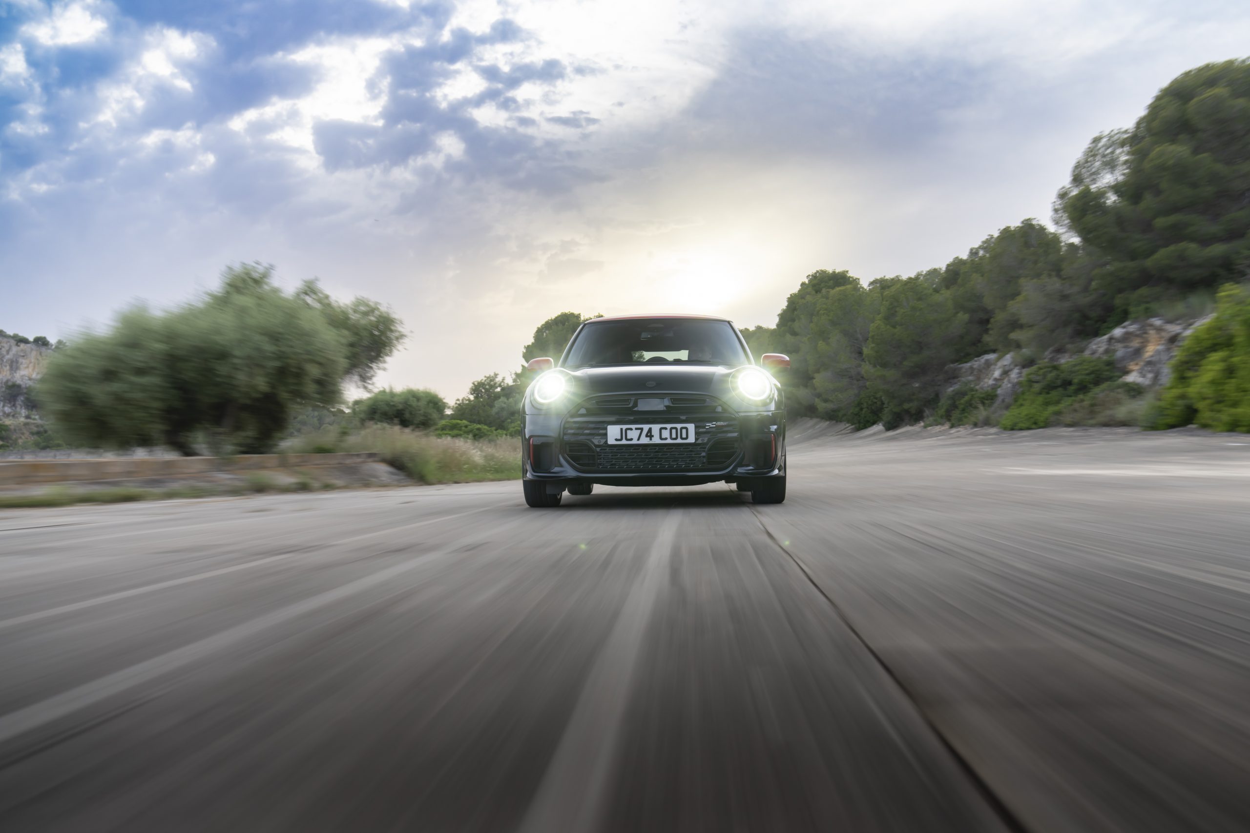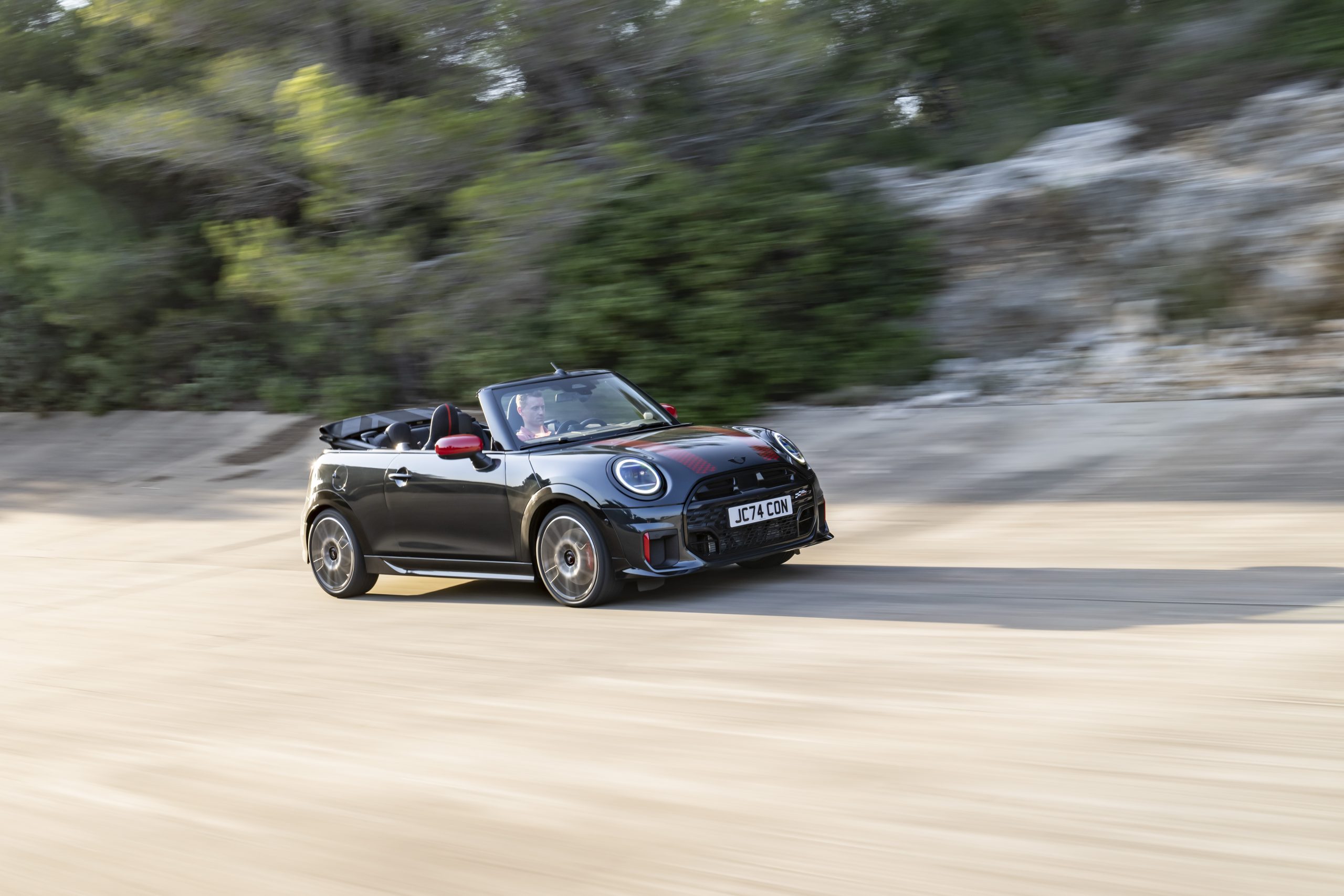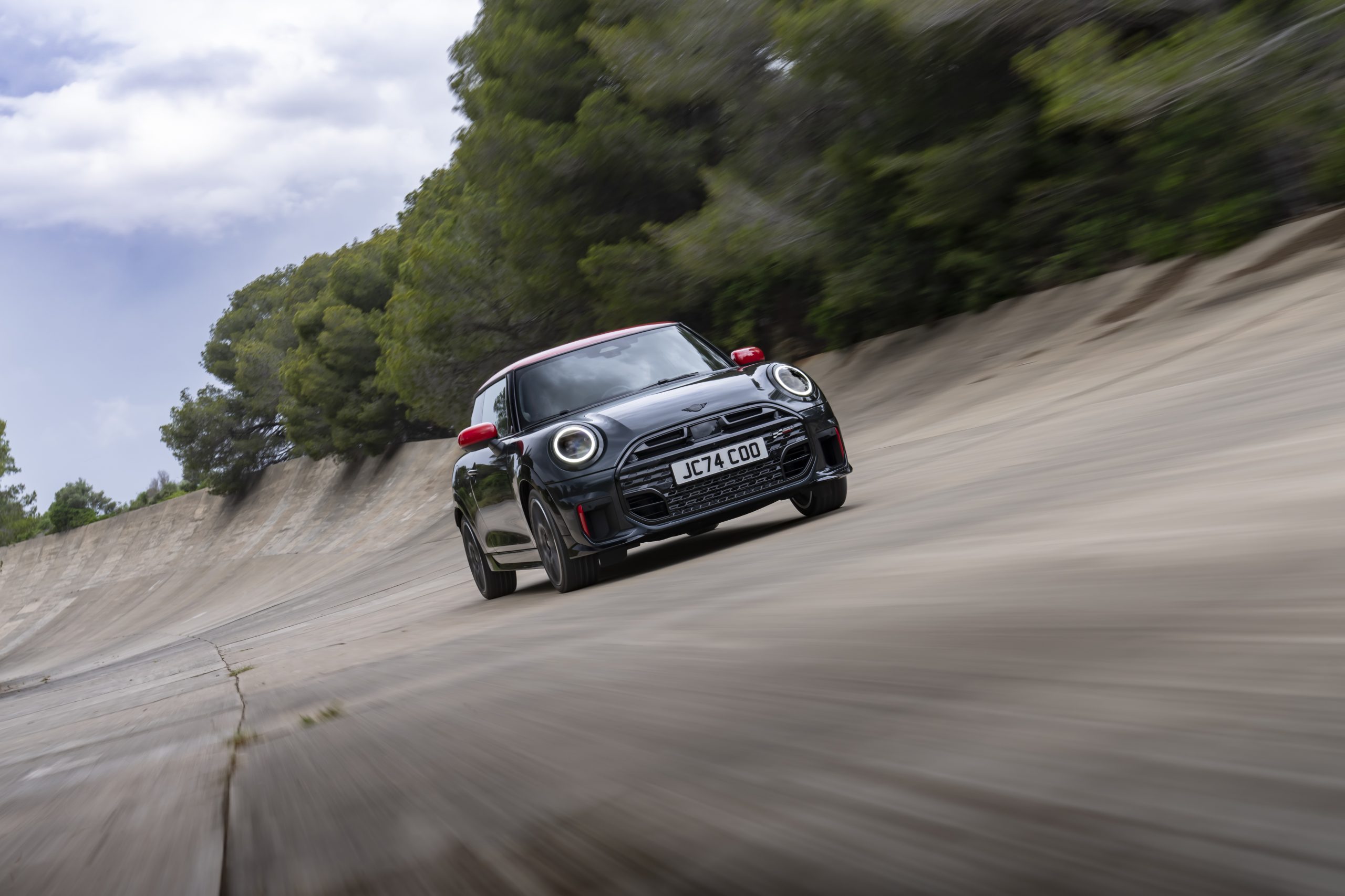 Wat het interieur betreft, zijn de JCW-modellen voorzien van sportstoelen met rode accenten en een sportstuur met schakelpaddles voor een maximaal sportief gevoel. Het OLED-display en de ergonomisch geplaatste bedieningselementen zorgen voor een intuïtieve rijervaring. De optionele Go-Kart modus stemt de cockpit volledig af op prestatiegegevens, wat de autosportflair verder versterkt.